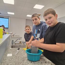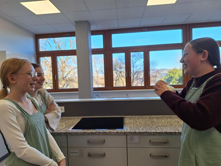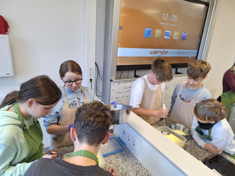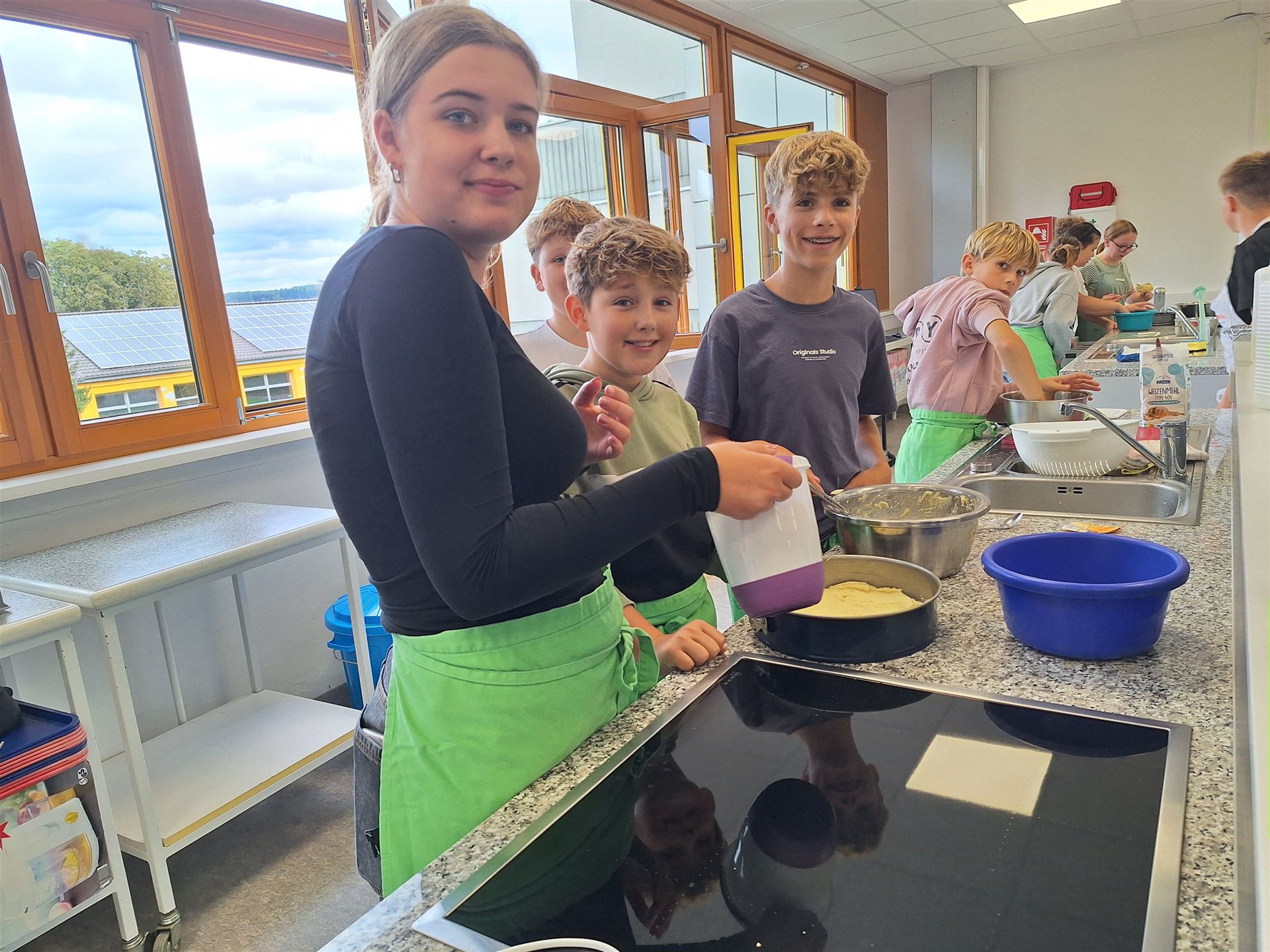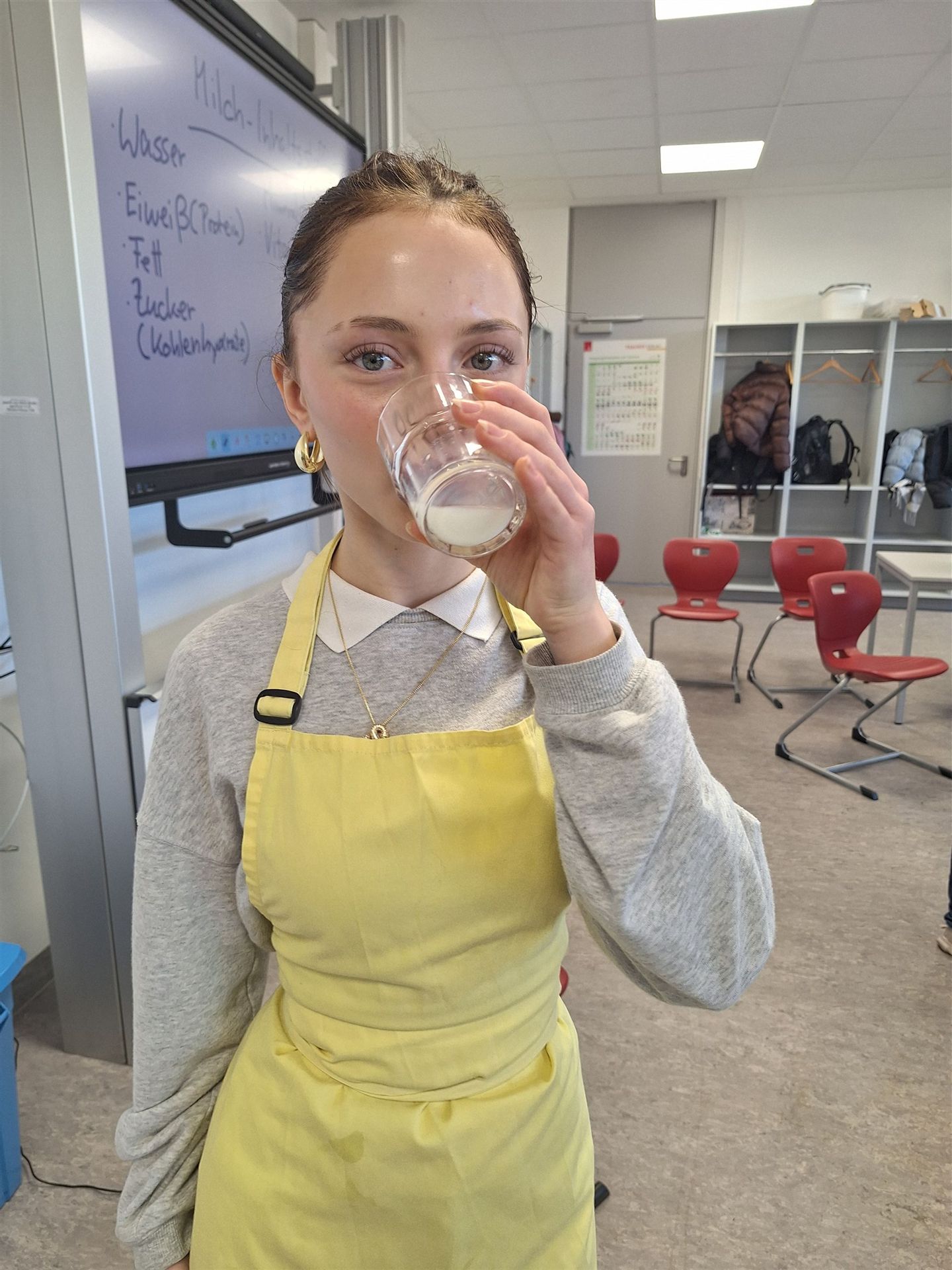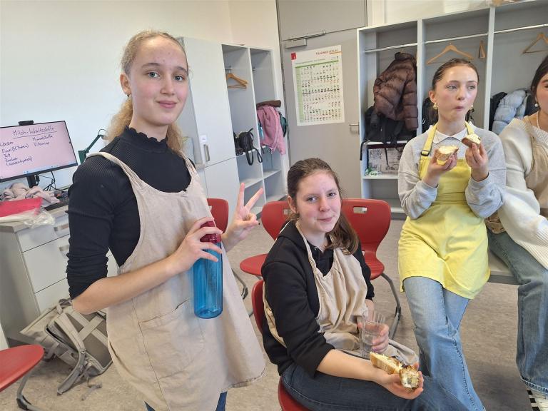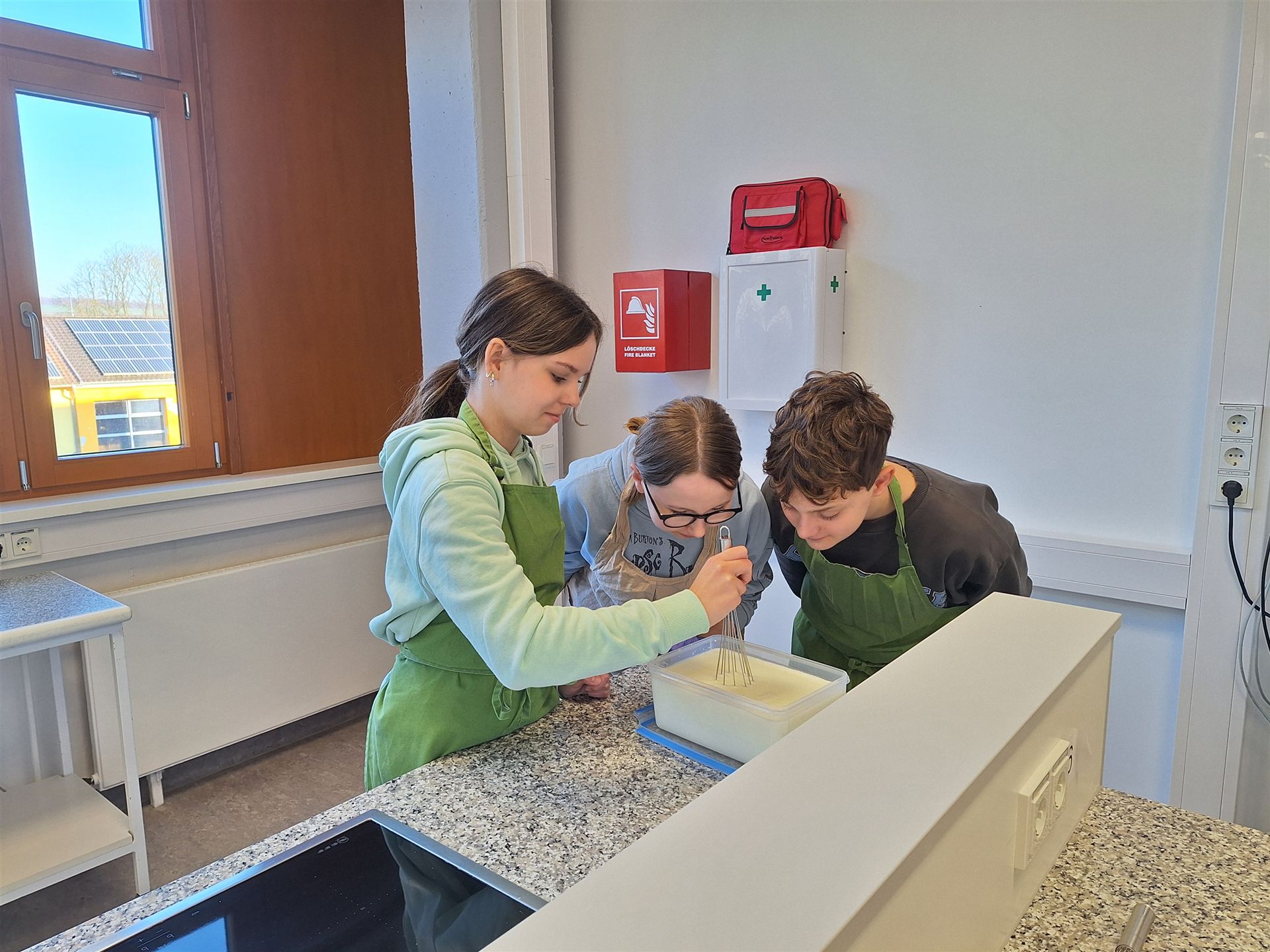 In einem spannenden Projekt haben wir an der KGS selbst Käse hergestellt. Die Pädagogen vom Lämmerhof aus Landolfshausen führten uns in der Schulküche durch das Thema Milch. Wir verwendeten regionale Bio-Milch aus der Region aus Diemarden. Wir lernten, woraus Milch besteht, und stellten daraus Butter, Buttermilch, Molke und schließlich Käse her. Mit echtem Lab aus dem Kälbermagen verwandelten wir das Milchprotein in Käse. Anschließend lagerte der Käse, sodass jeder Schüler am Ende ein Stück mitnehmen konnte. Die Begeisterung war riesig – die Schüler hatten Spaß, arbeiteten praktisch und lernten viel über den Käseprozess. Im Anschluss setzen wir uns damit auseinander, wie Milch in großen Mengen produziert wird, wie dies funktioniert und wie es den Tieren dabei geht. Außerdem beleuchten wir, wie die industrielle Milchproduktion abläuft und welche wirtschaftlichen Bedingungen dahinterstehen. Dieses Erlebnis hat den Wert von Lebensmitteln und nachhaltigem Wirtschaften praktisch vermittelt.