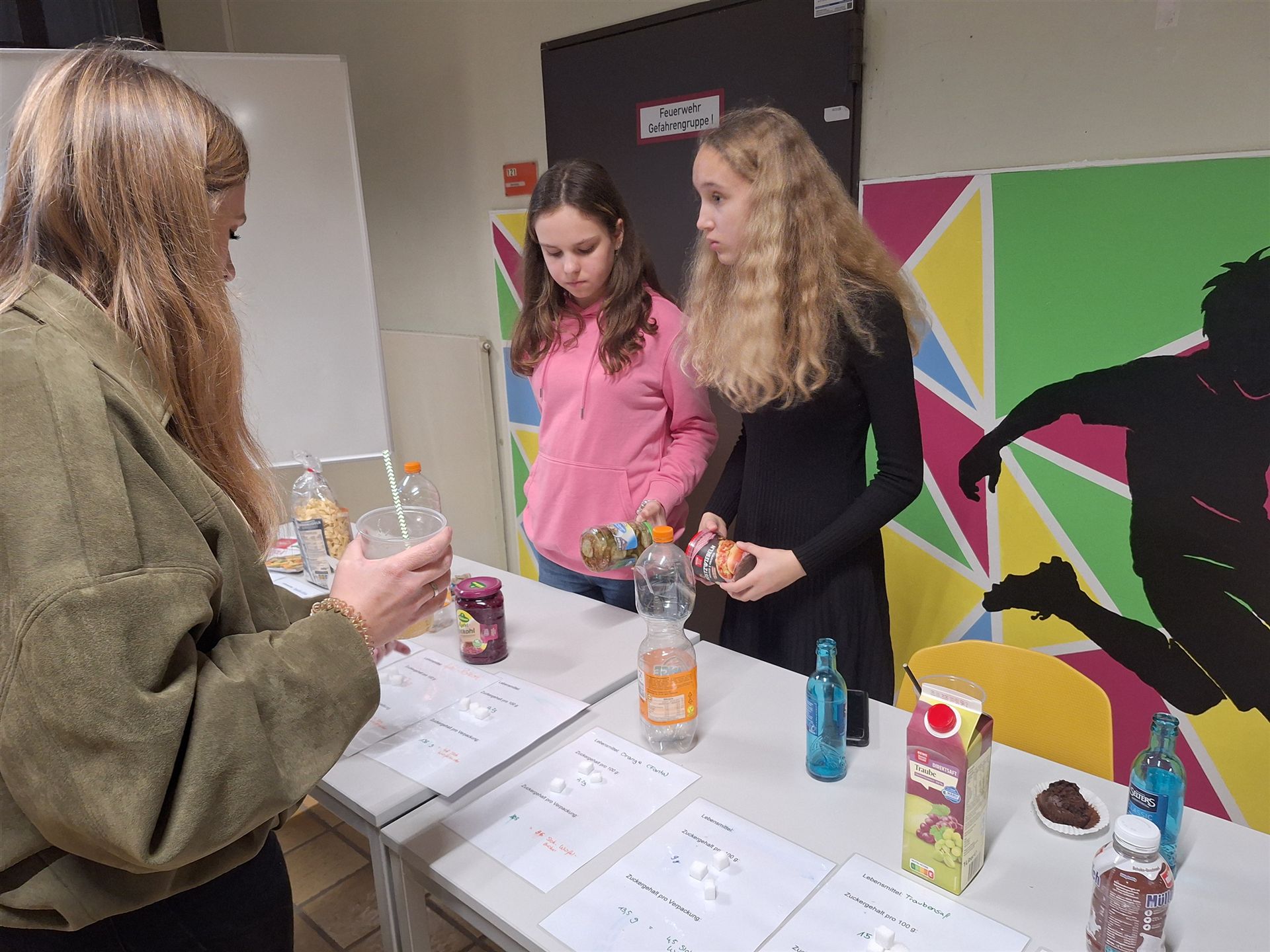 Der Profilkurs Jahrgang 8 widmete sich beim Profilabend dem Thema BNE und Zucker. In der Schulküche wurde gemeinsam aus Zuckerrüben Zucker extrahiert und zu Karamel-Sahne-Bonbons verarbeitet, die die Gäste mitnehmen konnten. Die Schüler stellten ihr Ergebnisse aus dem Unterricht aus und beleuchteten die globale Zuckergewinnung, den extrem gestiegenen Konsum und die historischen Zusammenhänge, etwa den Sklavenhandel. Sie zeigten, wie die industrielle Produktion, Monokulturen und gesundheitliche Folgen entstanden. Am Profilabend präsentierten sie ihre Erkenntnisse mit einem E-Book, Wortwolken und einer Stellwand, die sie mit Canva gestaltet hatten. Die digitalen Tools wurden im Profilunterricht erlernt.