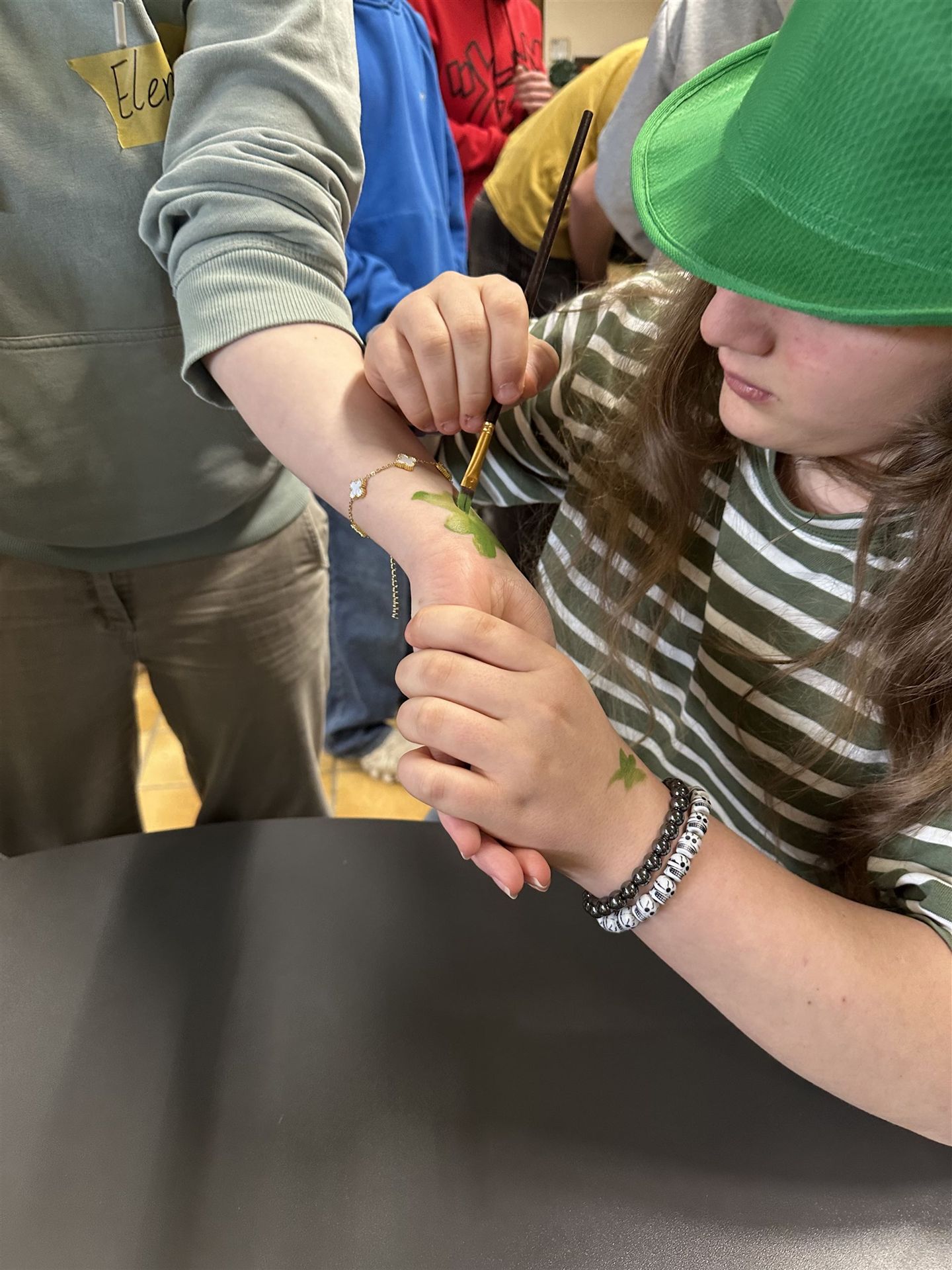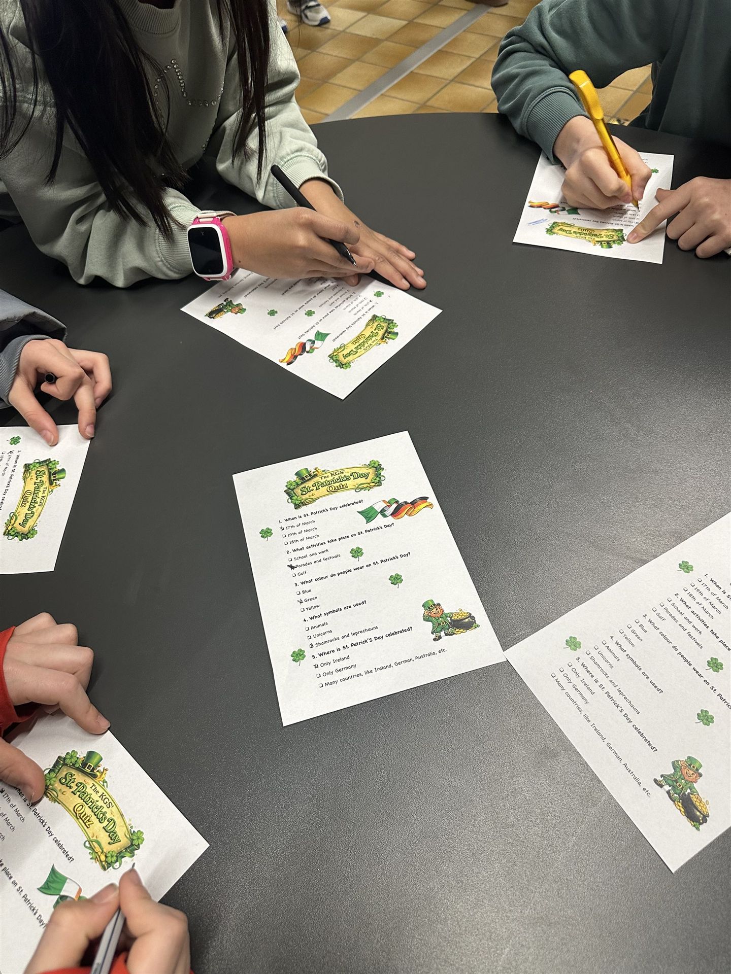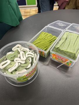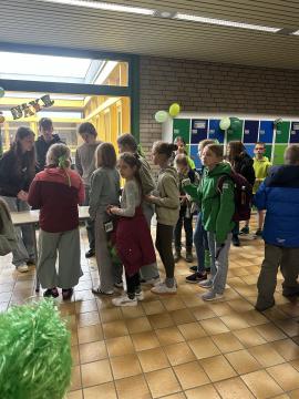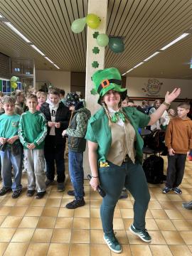 Am 17.03. wurde bei uns an der KGS der St.-Patrick's-Day gefeiert. Im „Nest“ sorgten viele Aktionen für eine tolle Stimmung. Die Klasse 10G1 organisierte einen Kuchenverkauf mit grünen Leckereien – von Wackelpudding über Getränke bis hin zu Kuchen war alles dabei. Die achten Klassen boten zusätzlich eine Schminkstation sowie ein Quiz rund um den irischen Feiertag an. Viele Schülerinnen und Schüler erschienen passend zum Anlass in grüner Kleidung. Für alle, die sich in Grün gekleidet hatten, gab es sogar eine kleine Überraschung. Passende irische Musik durfte natürlich auch nicht fehlen.