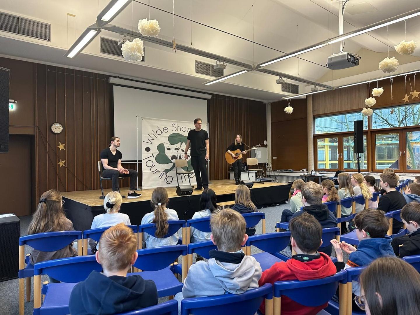 Zu Gast an der KGS Gieboldehausen war das Freie Theater Theaterwerkstatt Göttingen mit dem Stück „Child Survivors“ von Thea Brende. Der gesamte 9 Jahrgang und die 10R2 sahen das Stück über Kinder, die das KZ Bergen-Belsen überlebt haben. Durch biografische Angaben, Originalzitate und eindringliche Videoinstallationen wurde den Schülerinnen und Schülern die Perspektive der Kinder nahegebracht.