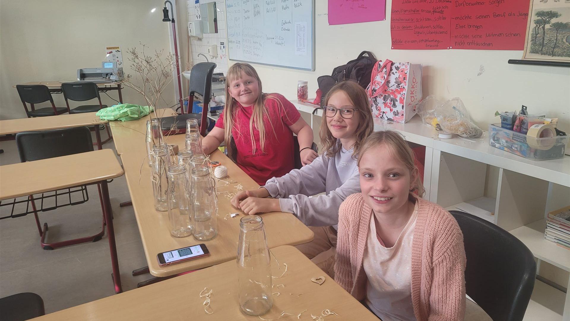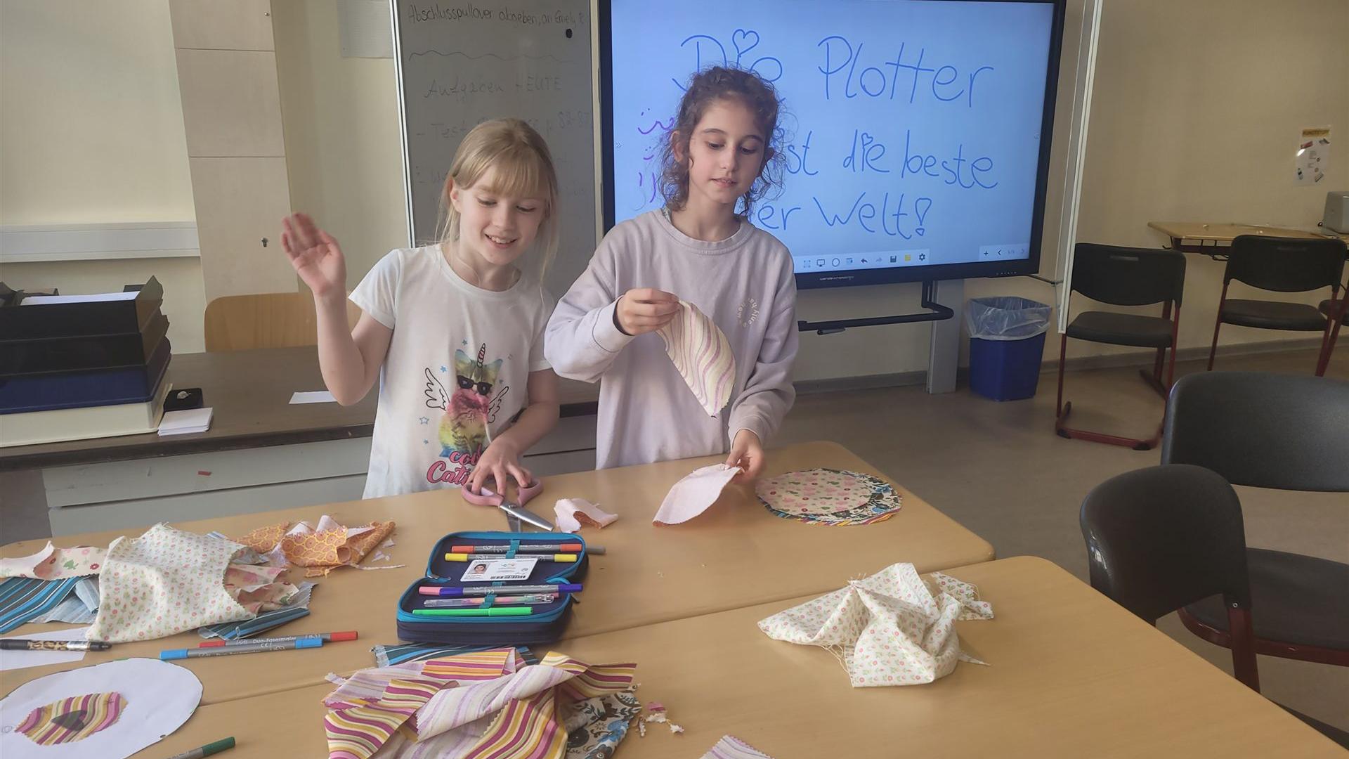 In der Kreativ- und Plotter AG kannst du deiner Kreativität freien Lauf lassen. Wir basteln, worauf du Lust hast und probieren ständig neue Dinge aus. Wir malen mit Acrylfarben und verschönern die Wände in der Schule. Außerdem upcyclen wir alte Stoffe, Gläschen oder Schachteln und verzieren sie mit Symbolen. Dafür steht uns auch ein Plotter zur Verfügung. Den Umgang damit wirst du erlernen. Man kann beispielsweise coole Sprüche auf T-Shirts bügeln und diese selbst designen. Auf dem Weihnachtsmarkt haben wir einen eigenen Stand und verkaufen unsere Produkte.