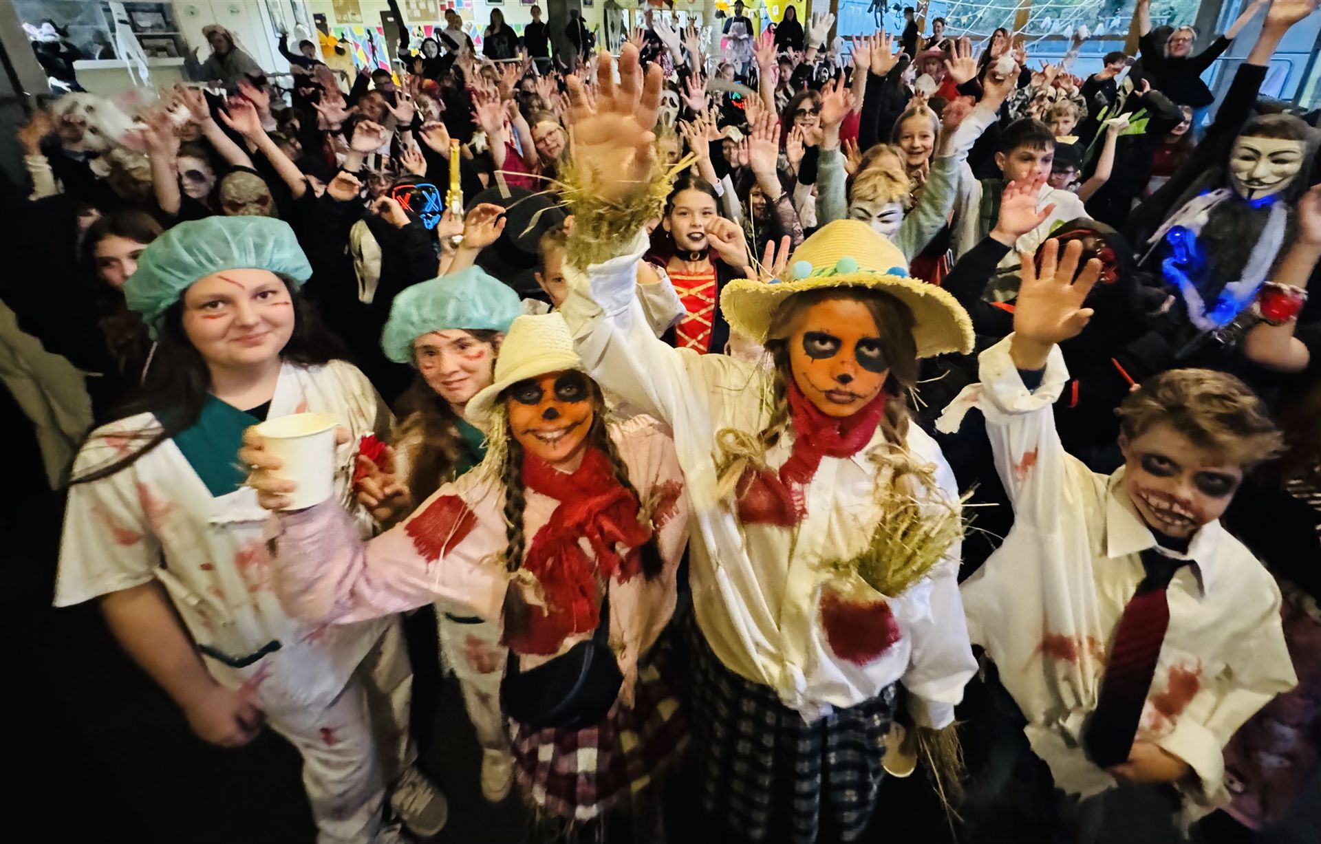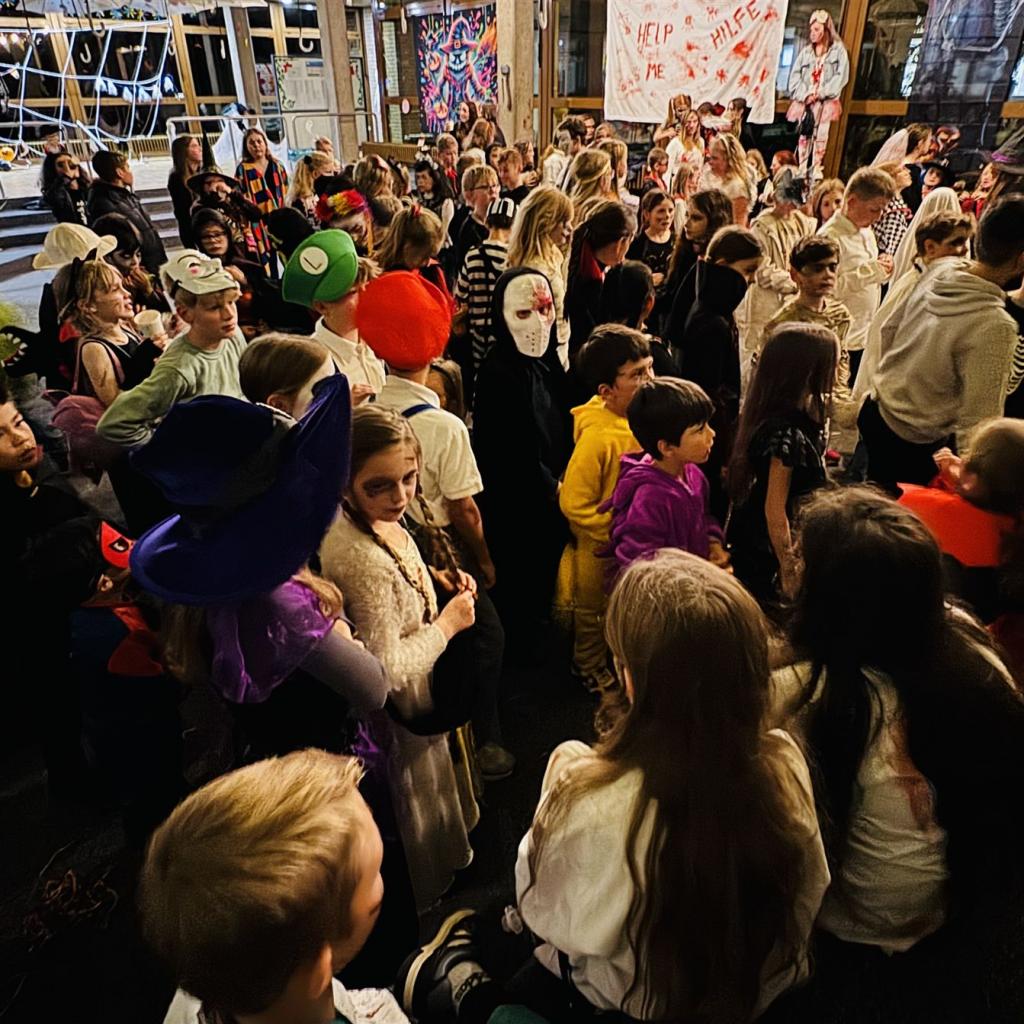 Rund 180 Schülerinnen und Schüler feierten, tanzten und spielten bis in den Abend hinein. Besonders spannend war der Kostümwettbewerb, bei dem viele kreative, gruselige und witzige Verkleidungen zu sehen waren. Die furchterregendsten Verkleidungen wurden mit Applaus und kleinen Preisen belohnt.