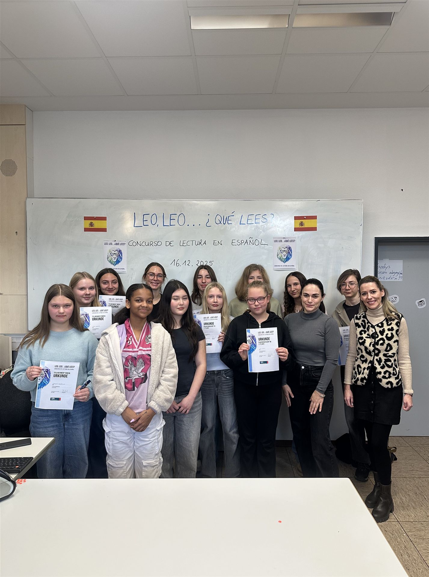 Wir danken allen Beteiligten für den gelungenen Ablauf und freuen uns bereits auf den nächsten spanischen Vorlesewettbewerb. Unsere Schulsiegerinnen und Schulsieger haben zudem die Möglichkeit, im zweiten Halbjahr am Landesentscheid teilzunehmen.