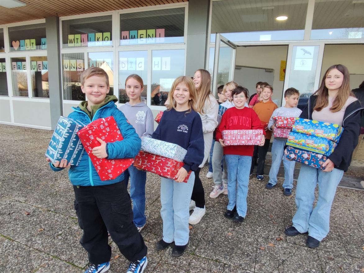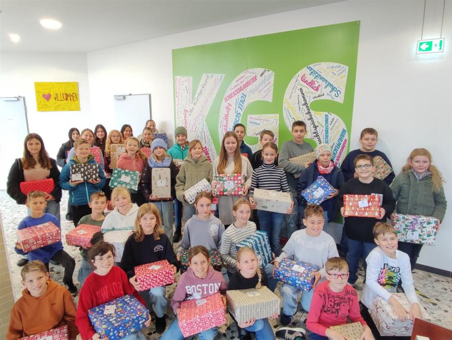 Daher hat sich die KGS auch in diesem Jahr wieder für den Weihnachtspäckchenkonvoi engagiert, um benachteiligten Kindern in Osteuropa eine Weihnachtsfreude zu bereiten. Insgesamt sind fast 100 Geschenke verpackt worden -ein großartiges Ergebnis! Als Gruppe beteiligten sich die 5G1, 5H1 und 5H2, die Klassen 6G1 und 6R2 sowie die 8G2, 10G1 und 10H1- und packten fleißig von Duschgel bis Zahnpasta, von Mütze bis Socke, von Malbuch bis Buntstift oder von Ball bis Kuscheltier zahlreiche Utensilien ein. Obwohl in diesem Jahr insgesamt wenig Pakete innerhalb der Klassen zusammengetragen wurden, war die Hilfsbereitschaft und das Bedürfnis anderen Kindern eine Überraschung zu bereiten dennoch enorm. Viele Schüler und Schülerinnen, aber auch Lehrkräfte sowie unsere Sekretärin Frau Kerl sammelten zu Hause emsig Gegenstände des täglichen Bedarfs sowie hübsche Dinge, die Freude bereiten sollen.