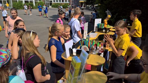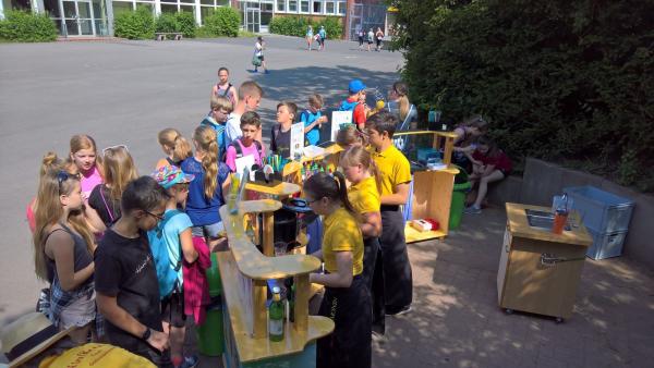 Bei strahlendem Sonnenschein fand der 1. Teil der Leichtathletik-Bundesjugendspiele auf dem Sportgelände der KGS für die Jahrgänge 5 bis 9 statt. Sprint, Weitsprung und Ballwurf waren zu absolvieren. Die Wim!Bar sorgte bei dem warmen Wetter für Abkühlung mit dem KGS-Refresher und einer Auswahl von Cocktails. Wir danken allen Schülerinnen und Schülern der Wim!Bar, die sich an diesem Tag für das Projekt engagiert haben.