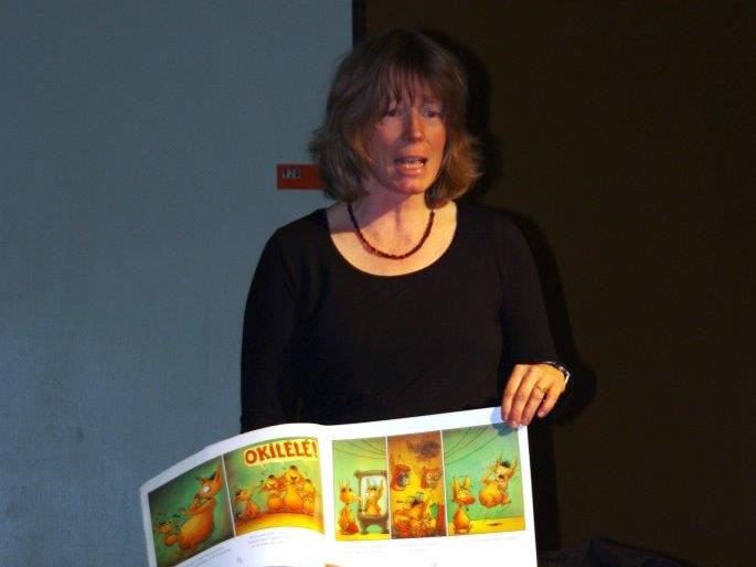 Danach entführte uns Frau Baumgartner (vom Figurentheater „rubinblau“) in die Welt des kleinen „Hässlich“, das auf dem Weg zu den Sternen viele Abenteuer mit seinem Freund dem Wecker besteht. Frau Baumgartner schaffte es, die Kinder ganz in ihre Geschichte hineinzuziehen. Sie spielte zwei Episoden aus ihrem Theaterstück „ Ojemine, du kleines Hässlich“ vor. Geschickt schlüpfte sie in die verschiedenen Rollen und es war unglaublich, wie sie mit unterschiedlichen Stimmen die Charaktere zum Leben erweckte und die Kindern so in ihren Bann zog. Nachher durften sie die Figuren selber in der Hand halten und die selbst gefertigten Materialien anschauen und ausprobieren.