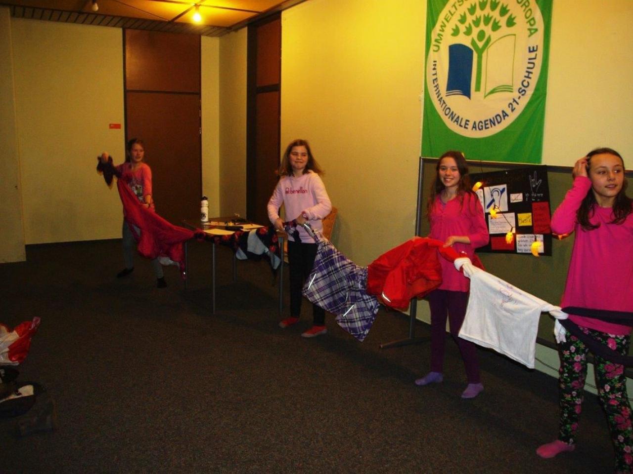 Um 18:30 Uhr fanden sich alle Schüler in der Schule ein und bereiteten ihre Schlafplätze im Forum der Schule vor. Und kaum waren die Eltern gegangen, musste erst einmal getobt und gespielt werden, denn wann sonst hat man die Schule mal für sich ganz alleine. Zu einer Lesenacht gehört auch ein Büchertisch, der als Tauschbörse und zum regen Austausch über Bücher diente.