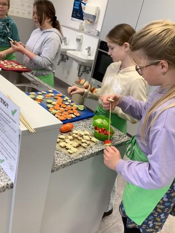 Alle Schülerinnen und Schüler des 5. Jahrgangs (Hauptschule, Realschule und Gymnasium) nehmen am Hauswirtschaftsunterricht teil und erhalten dabei die Möglichkeit, in der Schulküche aktiv zu werden. So sammeln sie erste grundlegende Erfahrungen im Umgang mit Lebensmitteln, Küchengeräten und dem gemeinsamen Arbeiten in der Küche.