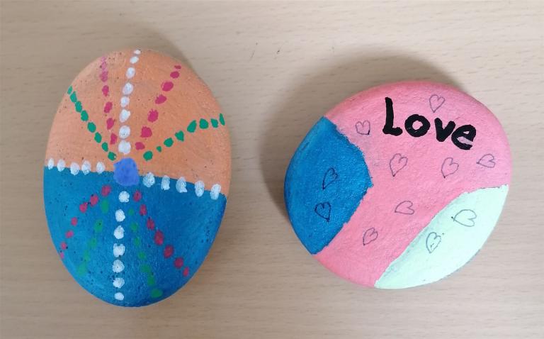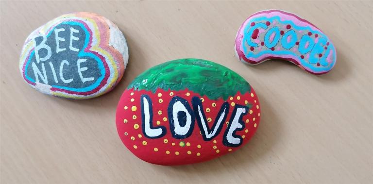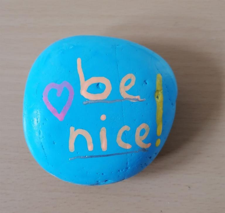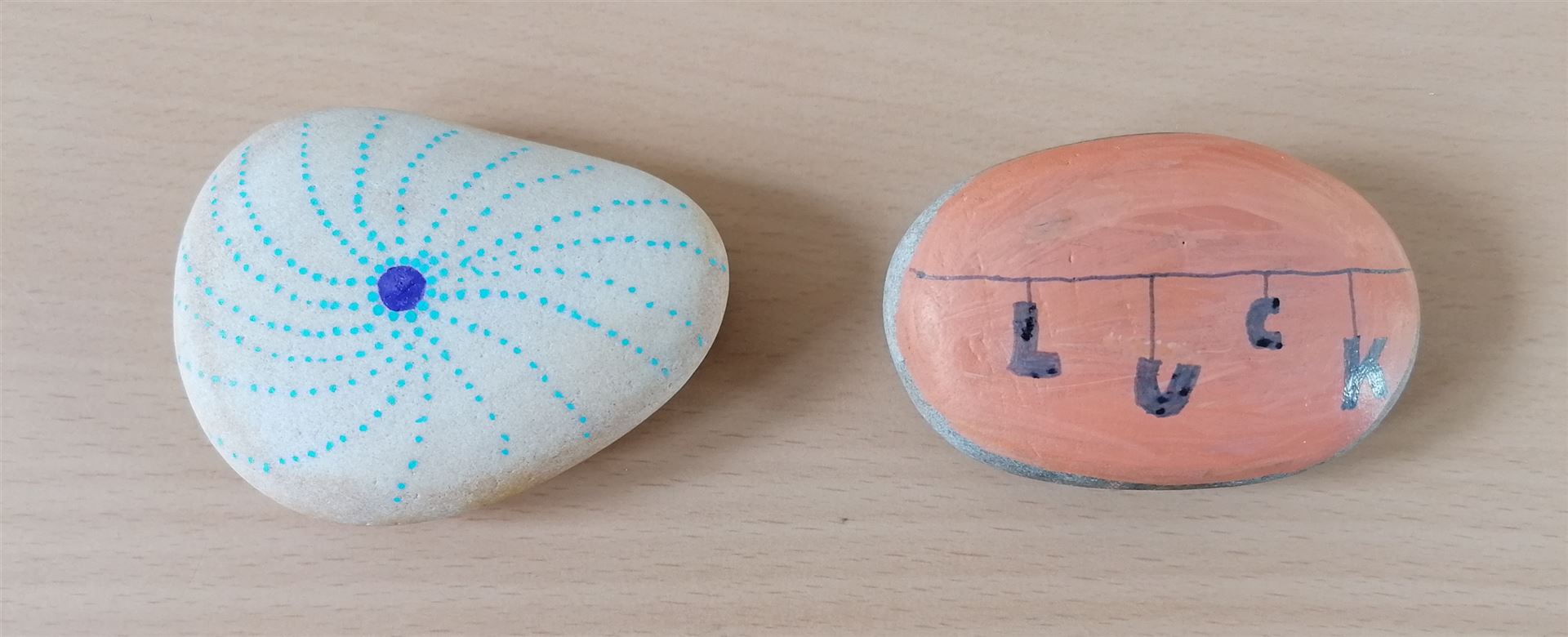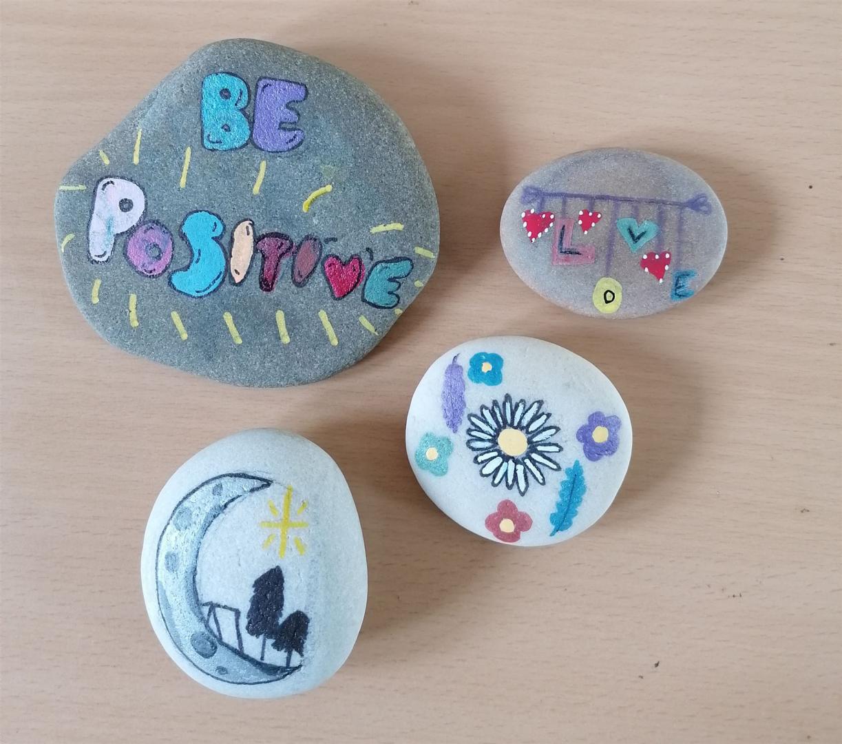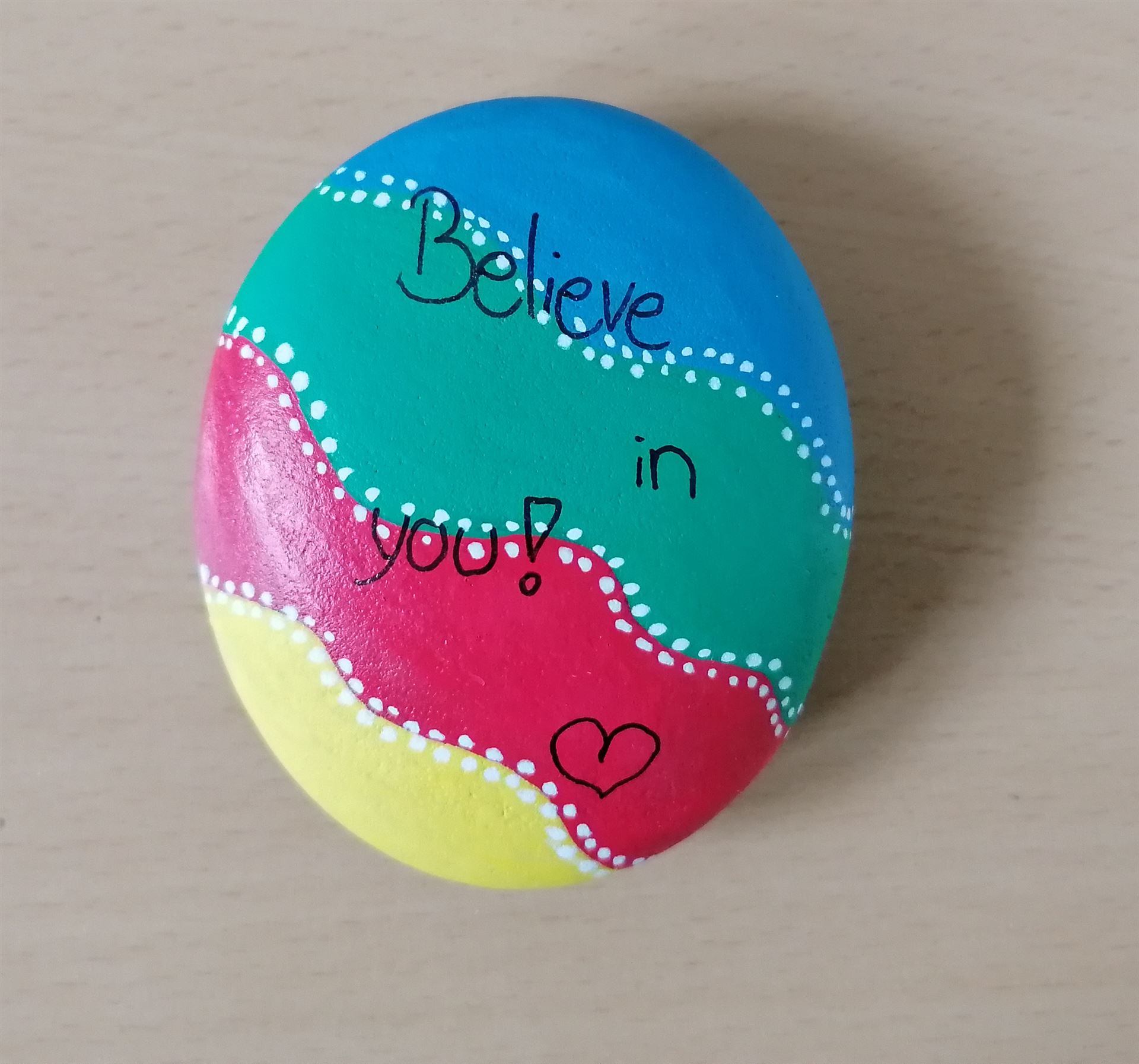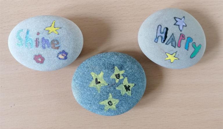 Die Mutsteine vom Nordseestrand hat die 9G1 nicht nur für sich selbst, sondern auch für andere Schülerinnen und Schüler als "Starthilfe"und" Mutmacher" für das neue Schuljahr gestaltet.
