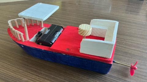 Werkstoffe: Windradturm als Aussichtsturm oder Solarrotor, Boot in Sichttechnik als TukTuk - Boot oder E-Moto |