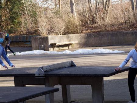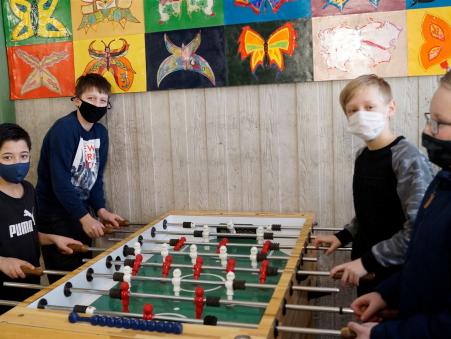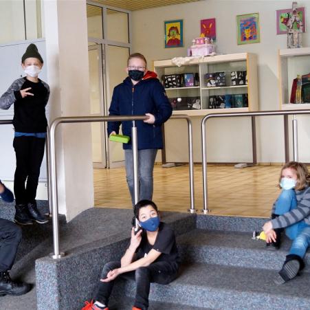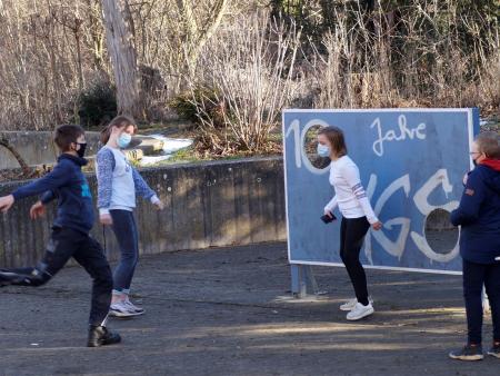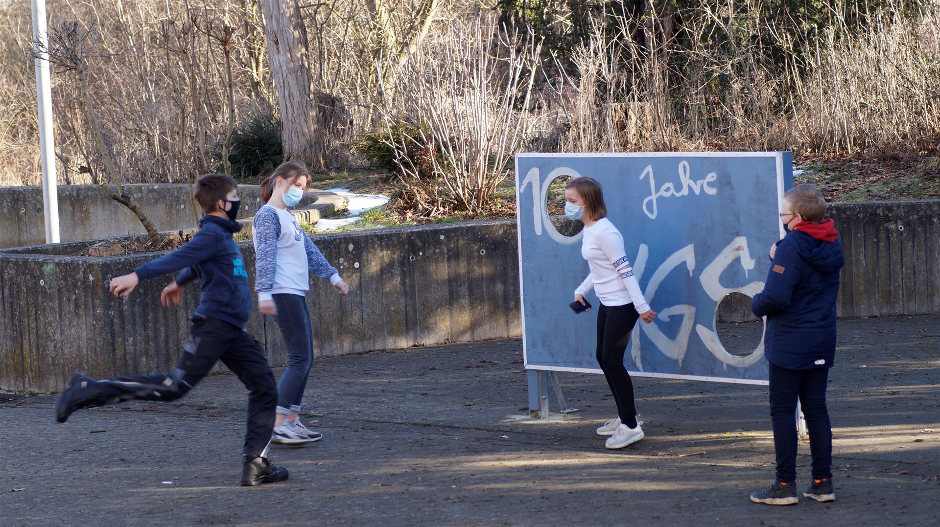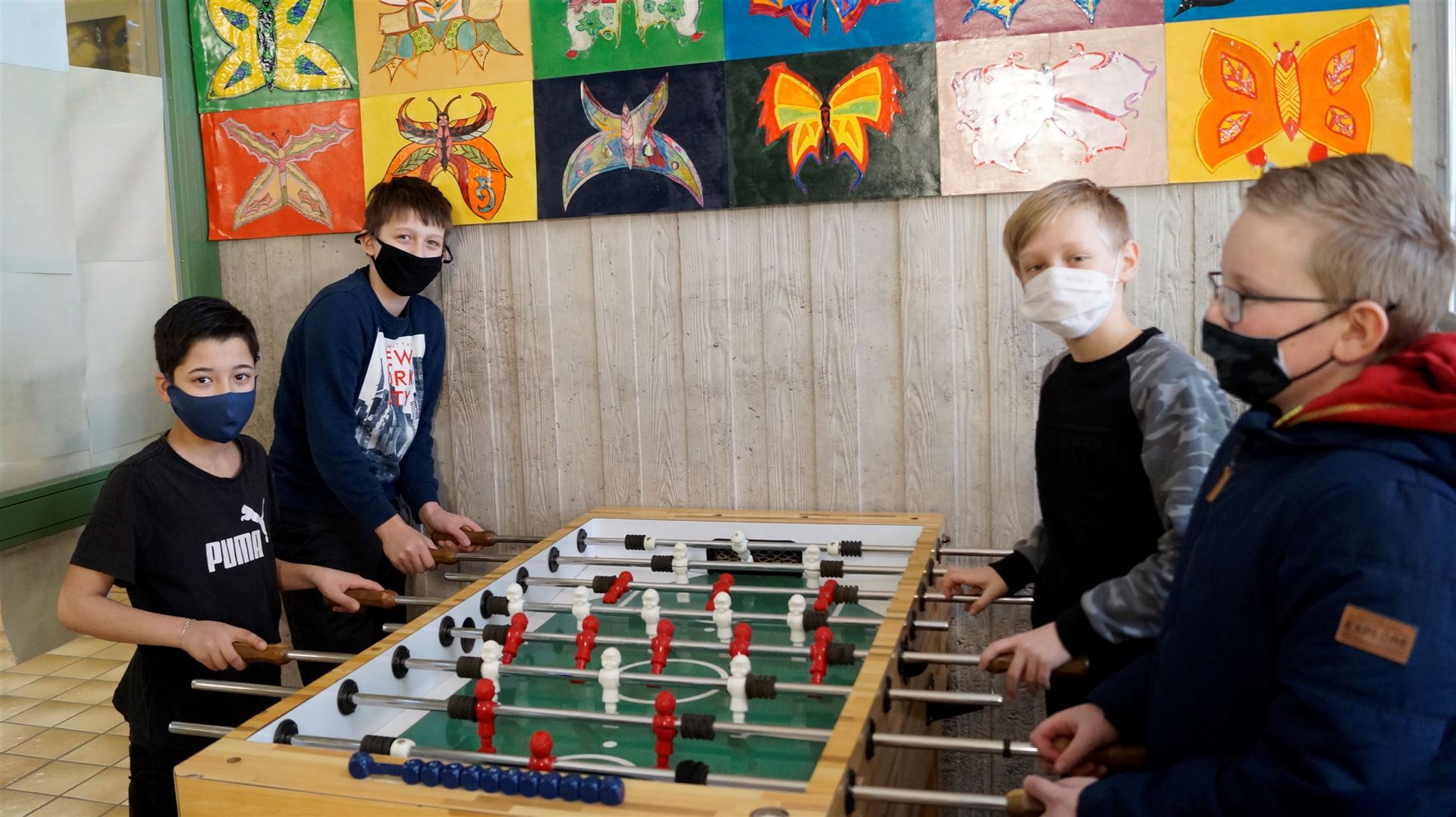 Damit ihr euch gut kennenlernt, sollt ihr die Zeit nutzen, um zusammen zu spielen. Wir haben auf dem Schulhof Tischtennisplatten, eine Torwand, ein Klettergerüst, Basketballkörbe, einen Fußballkäfig und eine Villa Kunterbunt, in der ihr Spielgeräte ausleihen könnt. Wenn ihr euch wetterbedingt drinnen aufhalten müsst gibt es eine Spielesammlung. Außerdem könnt ihr euch am Kiosk mit Snacks stärken oder eure Wasserflasche am Wasserspender auffüllen.
