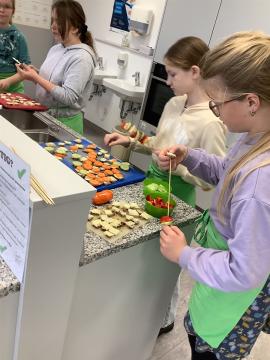Im neuen Fach Hauswirtschaft arbeitest du häufig mit Lebensmitteln und lernst deren Zubereitung. Dir wird beigebracht, wie du sicher arbeitest, deine Arbeit organisieren kannst, welche Hygienemaßnahmen einzuhalten sind und was für die Gesundheit und den Verbrauch zu beachten ist.