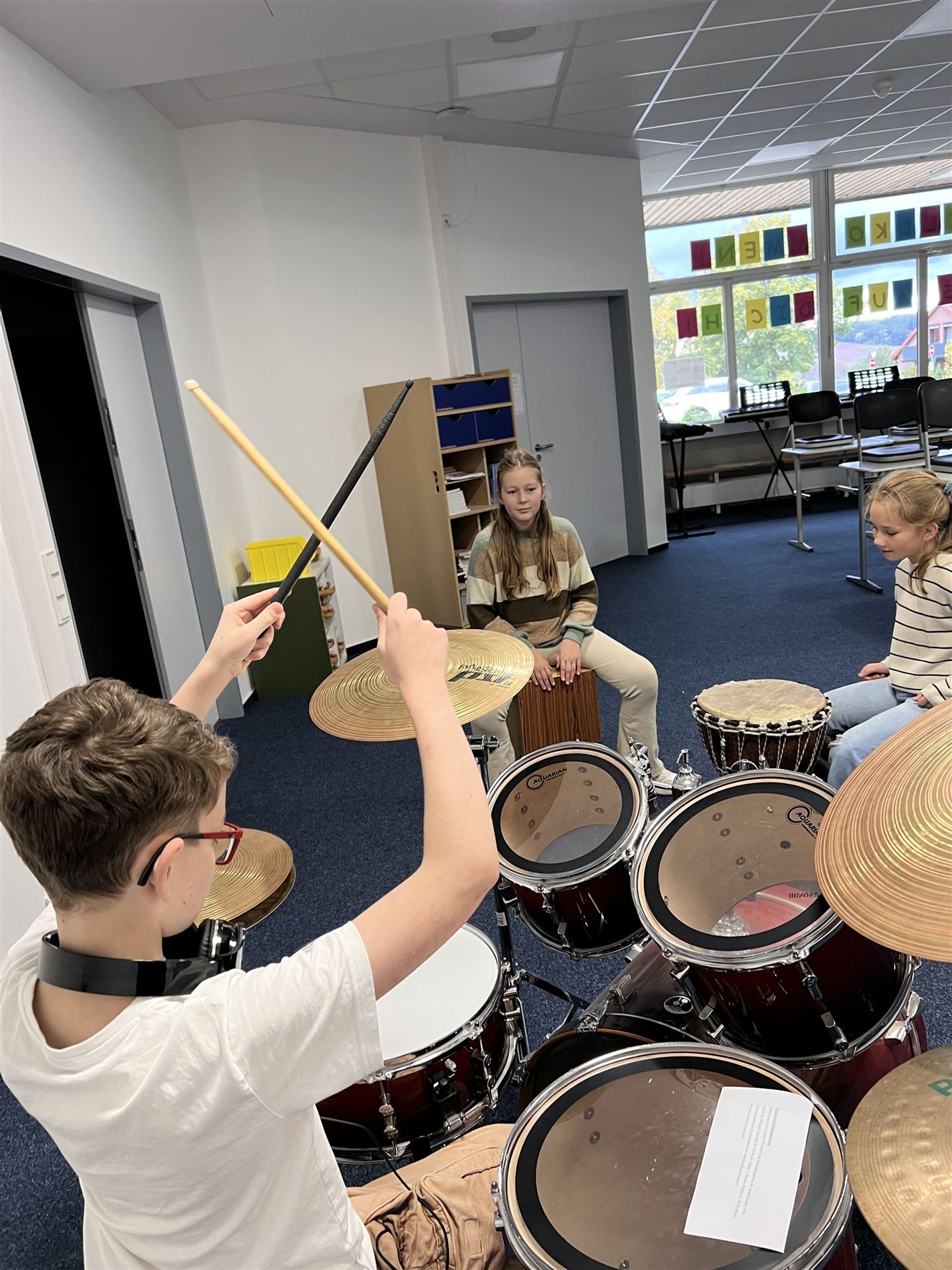 Das Fach Musik ist jedem schon aus der Grundschule bekannt. In der KGS baust du an vielen weiteren Instrumenten, wie Keyboards, Boomwackern, Stabspielen, Gitarren und Schlagzeugen deine musikalischen Fähigkeiten aus. Unsere beiden Musikräumen haben die modernsten digitale Tafeln und Bildschirme zum Schreiben und Präsentieren. Für Präsentationen und große Veranstaltungen, wie die Einschulungen, Zeugnisausgaben, Konzerte und Aufführen nutzen wir die Aula mit unserer Bühne und neusten Beschallungstechnik.